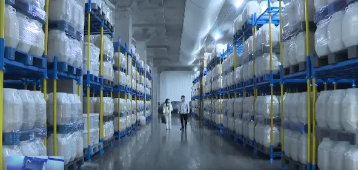 广东天拓冷链物流基地负责人 钟扬帆: 目前的库存有2200多吨,分别是果汁还有苹果。到12月底可以正式投产运营。